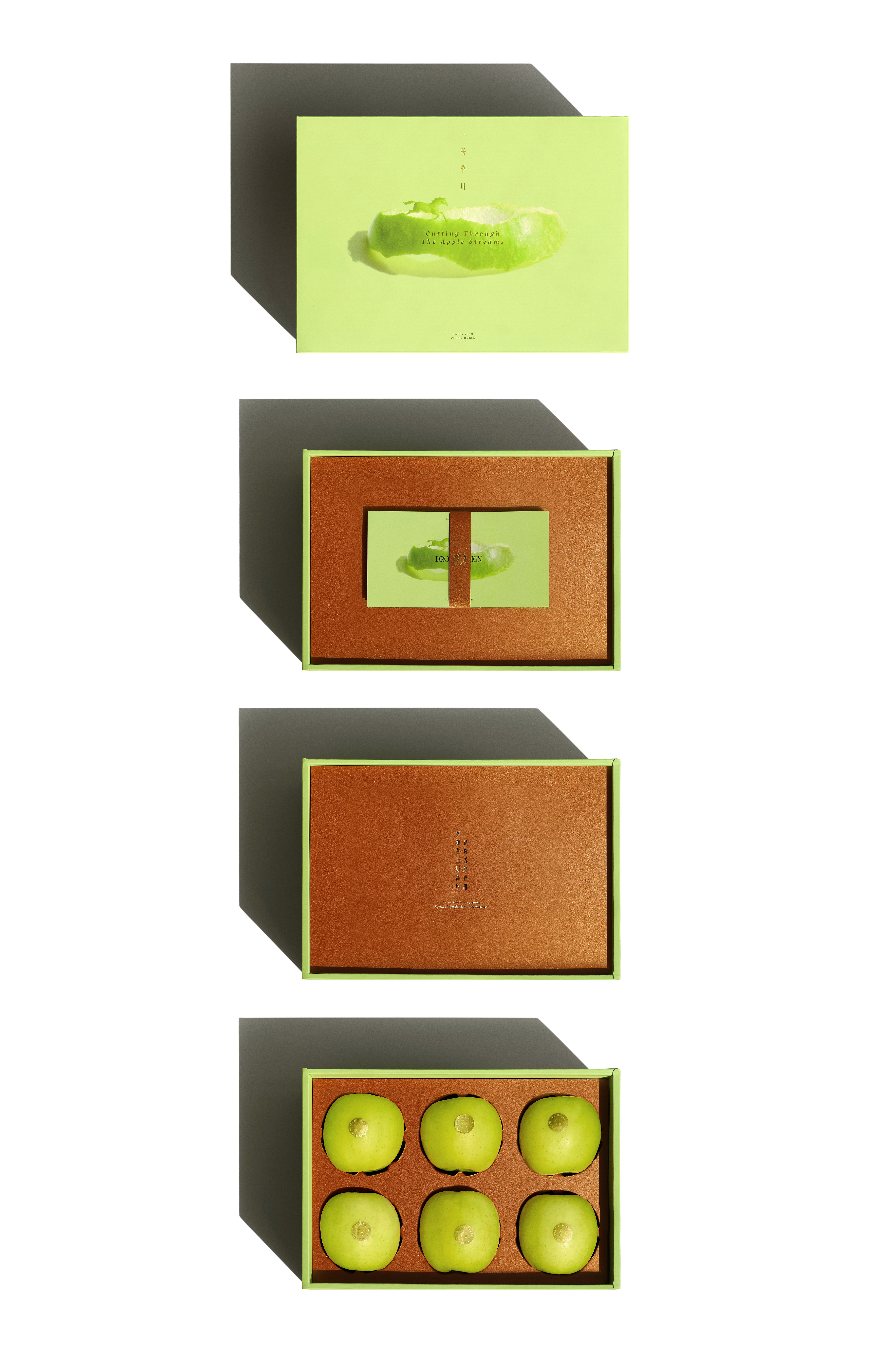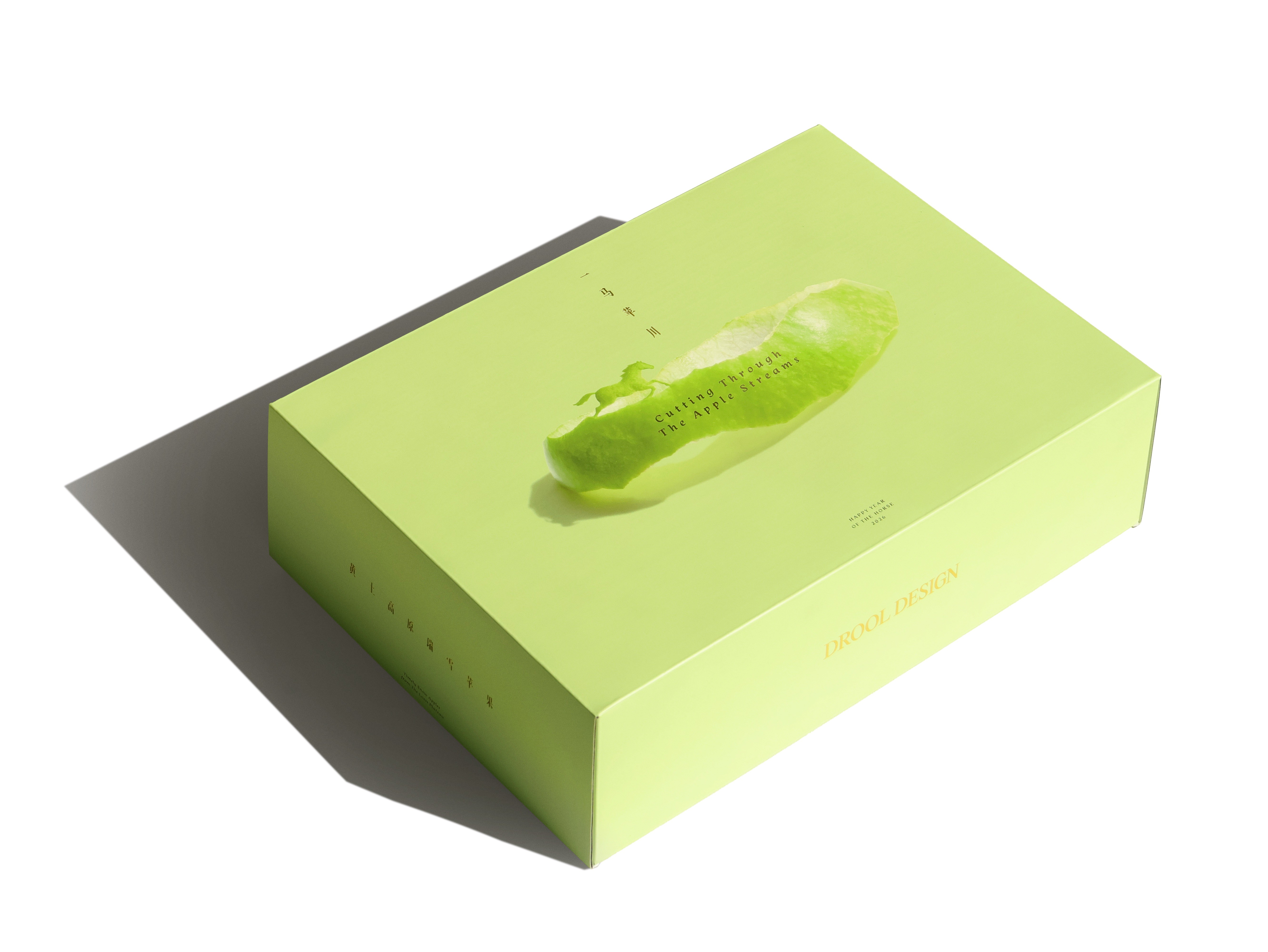 《一马苹川》是 Drool Design 为 2026 丙火午马年设计的开春礼盒。概念来自成语一马平川,寓意马年平安、顺心如意、一帆风顺。内含 6 颗来自黄土高原的甄选瑞雪苹果及八枚红包封。